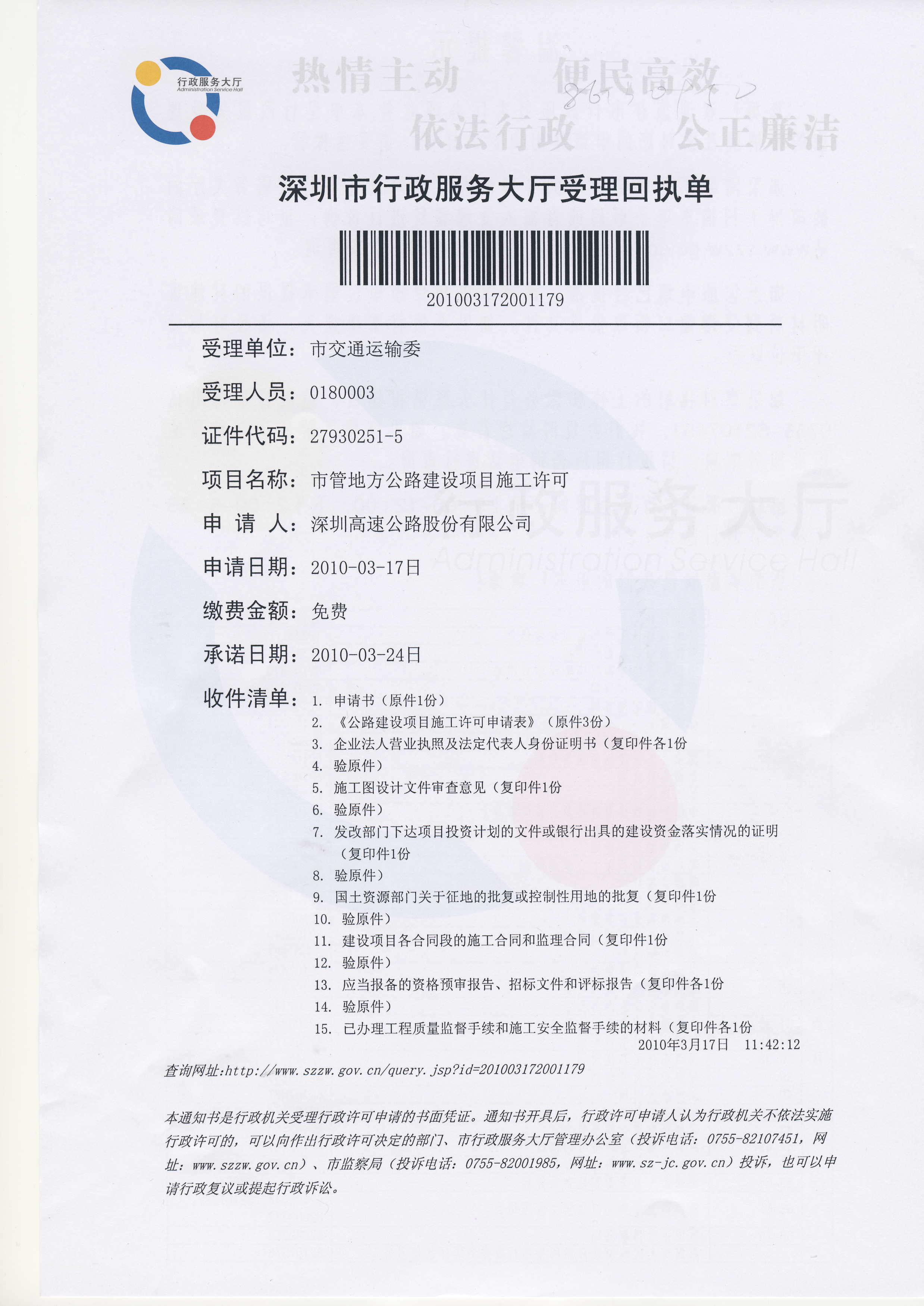 | 名称: | 深圳市行政服务大厅受理回执单(201003172001179) | ||